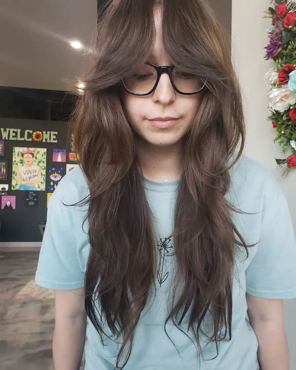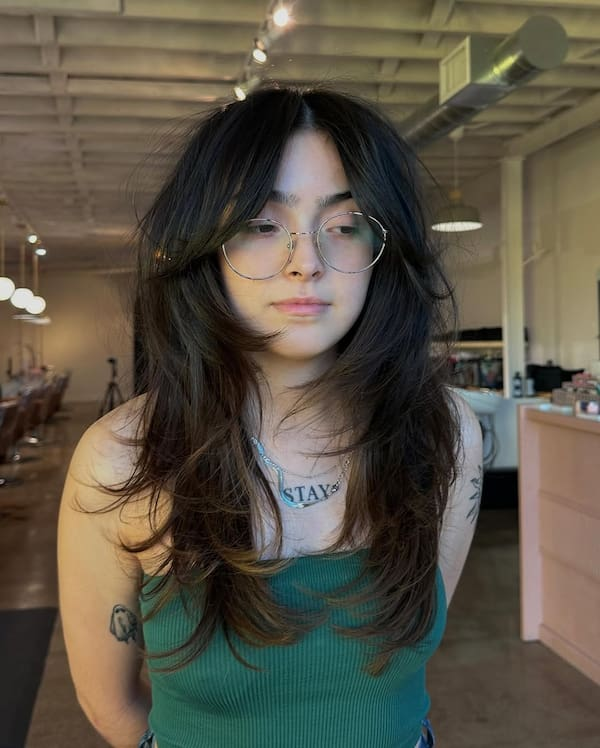 The long wolf haircut is a bold, edgy style that blends shaggy layers with a modern, rock-inspired flair. Inspired by the classic “wolf cut,” this hairstyle features longer lengths with choppy layers throughout, giving hair volume, movement, and a slightly untamed, textured look. It works beautifully on straight, wavy, or curly hair, enhancing natural texture while creating a statement silhouette.