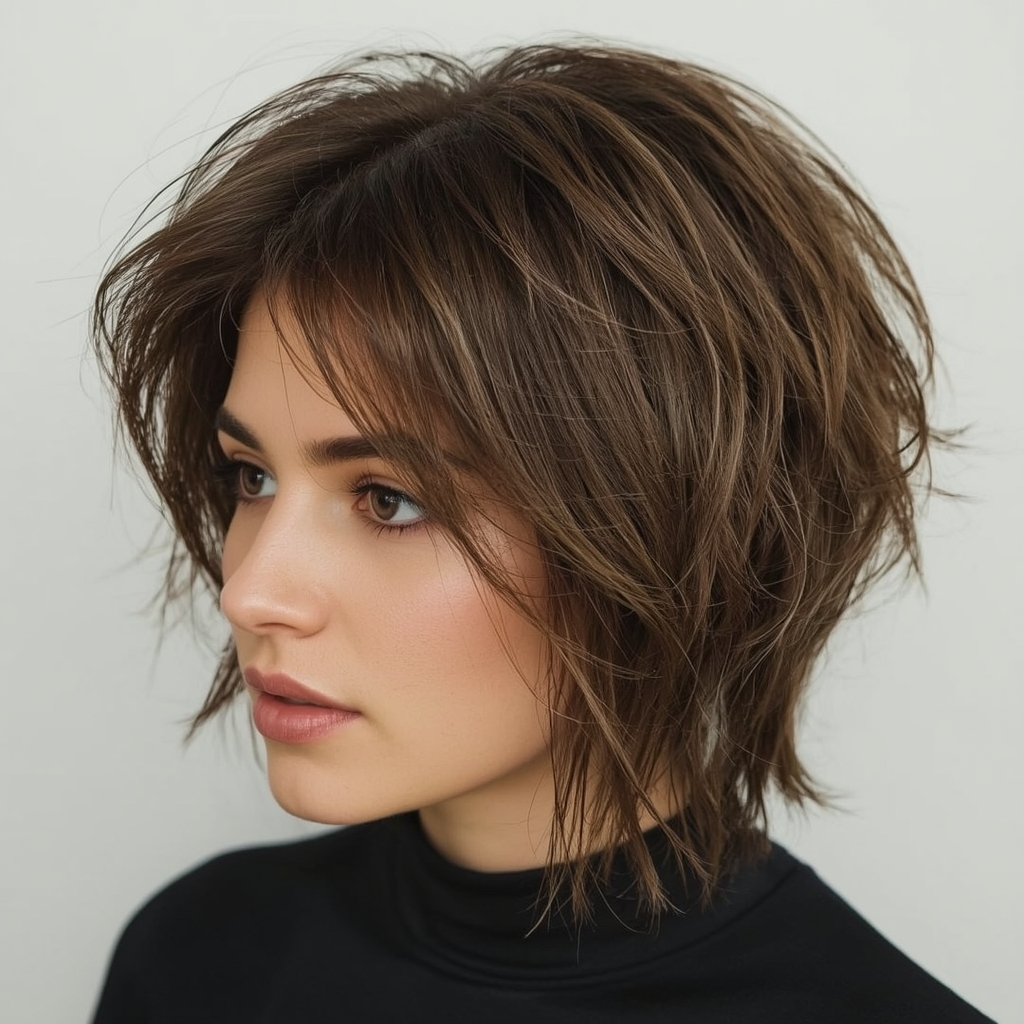 The wolf lob combines the long bob with wolf-cut layers, creating a playful yet structured style. Layers add bounce and volume to medium-length hair, while the lob shape maintains elegance. This hybrid cut suits various face shapes and hair textures, from straight to wavy, and allows easy styling versatility. Loose waves, smooth finishes, or slightly tousled looks all work beautifully. The wolf lob is perfect for anyone wanting the best of both worlds: chic, wearable length and edgy layered texture.