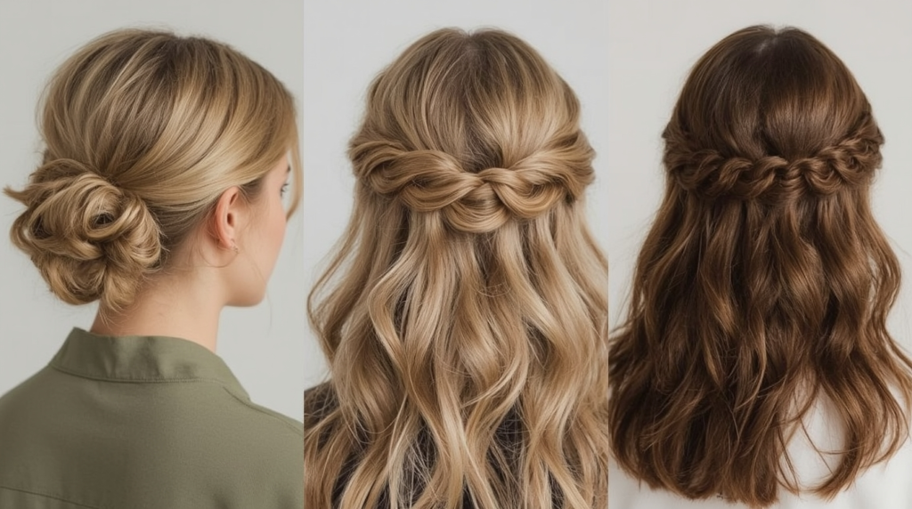 This style is simple, requiring few tools—sometimes just a hairband or a few pins. It works for medium to long hair and is especially practical for busy schedules, offering an elegant look without extensive preparation. The up-do/down-do can be dressed up with minimal accessories or left natural for a casual vibe.