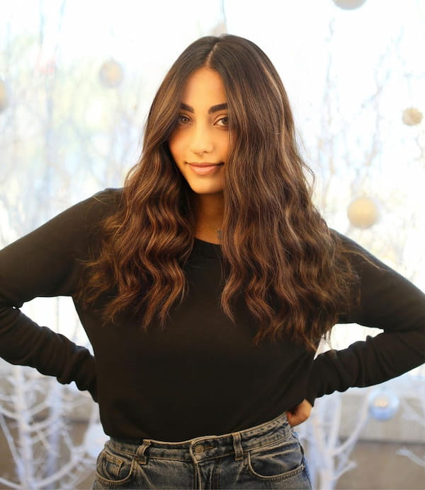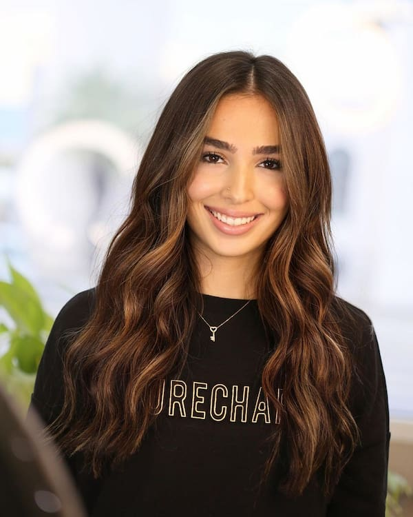 Soft waves paired with warm caramel tones create a flattering and radiant look. This low-maintenance style gives your hair natural volume and shine while enhancing facial features. It works beautifully for casual days, social gatherings, or semi-formal events.