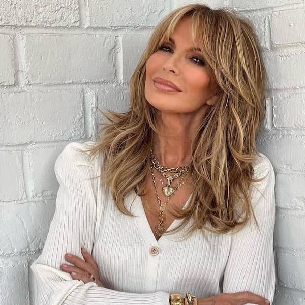 Feathered layers with bangs give hair a light, airy feel while adding softness and volume. This cut works beautifully for thin hair, preventing it from appearing flat. The bangs frame the face elegantly, giving a sophisticated yet approachable look. Feathered cuts are particularly flattering for women who want a feminine, timeless style with minimal maintenance.