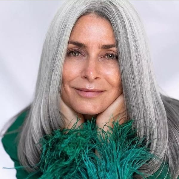 A straight gray haircut emphasizes smoothness and shine, providing a sophisticated and modern look. Keeping the strands straight enhances the hair’s natural gray tone, creating a polished and professional appearance. This style is versatile, working well in both casual and formal settings, and is ideal for women who want to embrace their natural color with confidence.