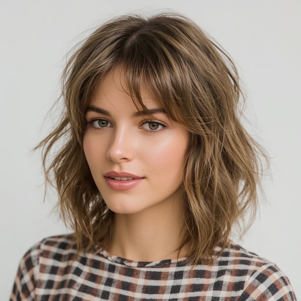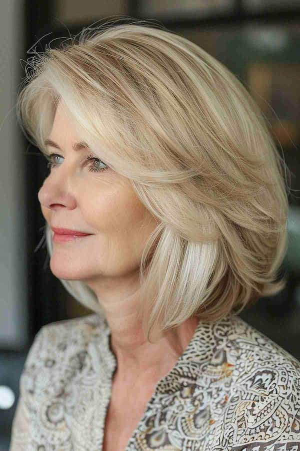 A lob (long bob) with bangs adds a playful yet sophisticated touch to mid-length hair. The soft waves create volume and movement, while the bangs gently frame the face. This combination ensures a flattering, age-defying style that looks effortlessly chic. It’s an excellent option for women who want a modern look with minimal daily effort, maintaining both comfort and style.