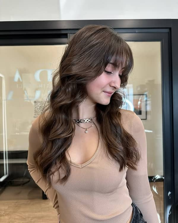 Choppy Wavy Haircut with Wispy Bangs
