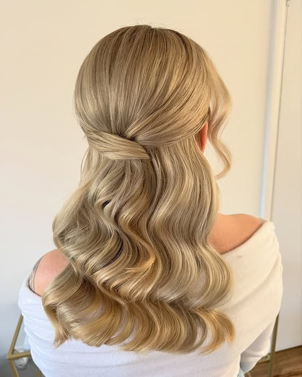 Half Down Glam Waves for Weddings