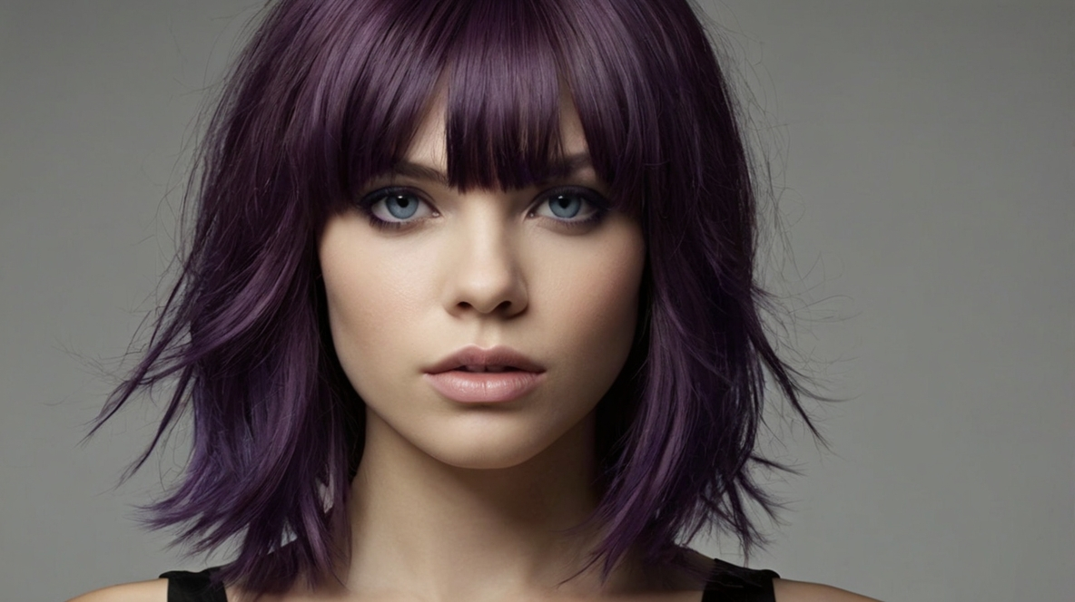 For those who love bold colors and unique styling, this long-stepped layered haircut is ideal. The deep purple hue adds a contemporary flair, while the stepped layers and fringe create dramatic movement. It’s a striking choice for medium-length hair that wants to stand out, offering both style and sophistication for colored hair enthusiasts.