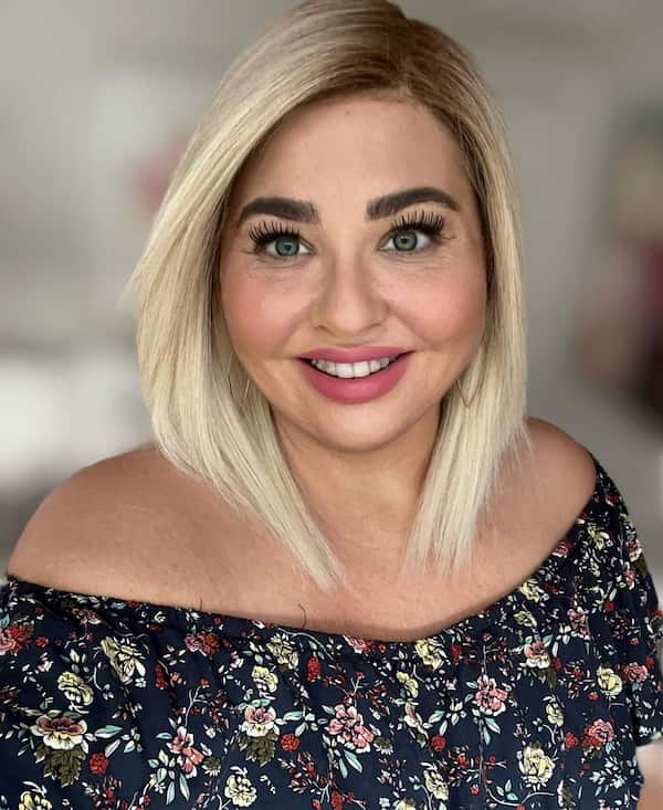 This layered bob exudes elegance and charm. Sleek layers paired with a side part and blonde tones enhance volume and structure. Perfect for a bold statement or special occasion, it balances style and sophistication effortlessly.