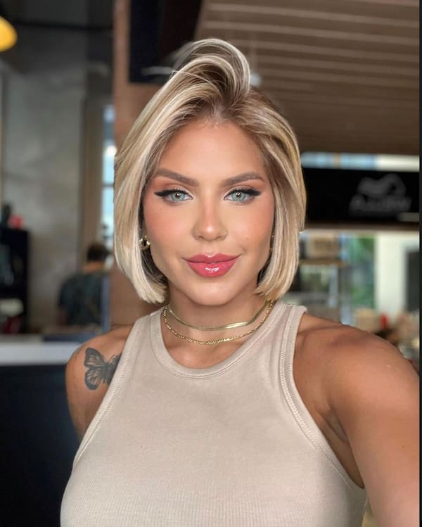 For a more casual alternative, a loosened fringe gives the pixie bob a relaxed, playful vibe. While not as precise as a fully smoothed fringe, this style offers a carefree elegance that is easy to maintain. The slightly tousled effect adds texture, making the haircut adaptable to both formal and informal settings, while blonde highlights enhance dimension and brightness.
