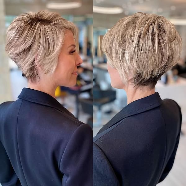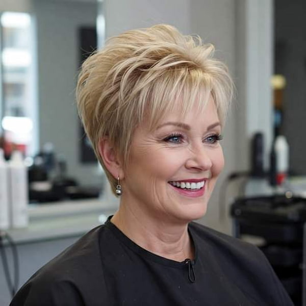 Maintenance is key to keeping this style looking its best. Trims every six to eight weeks prevent the nape from overgrowing and maintain the layered structure. This pixie is excellent for older women who want a stylish, manageable haircut that emphasizes elegance and femininity. Its combination of ease, sophistication, and flattering lines makes it a reliable choice for those seeking a timeless yet modern pixie style.