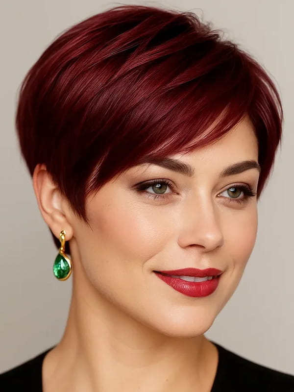 Maintenance includes trims every five to six weeks to preserve the sleek silhouette. This style proves that age doesn’t limit your ability to look glamorous—whether for formal events or personal milestones, the red carpet pixie combines ease of wear with show-stopping elegance.