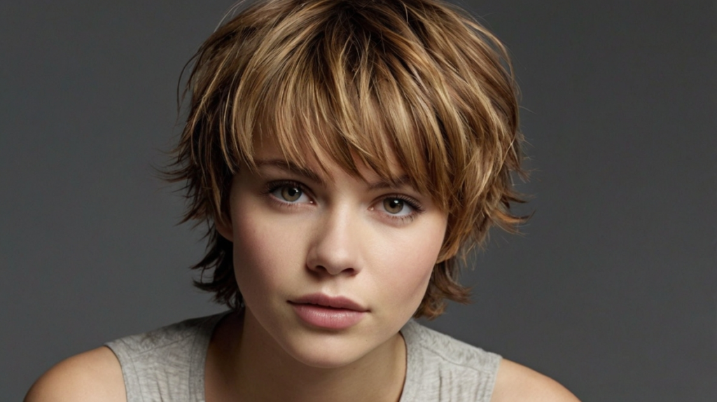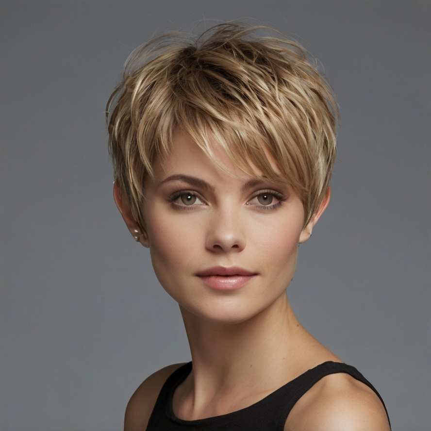 Regular trims every five to six weeks maintain the layers’ definition and prevent the style from losing its feathered effect. This pixie style combines volume, texture, and elegance, offering a modern, low-maintenance option that remains timeless.
