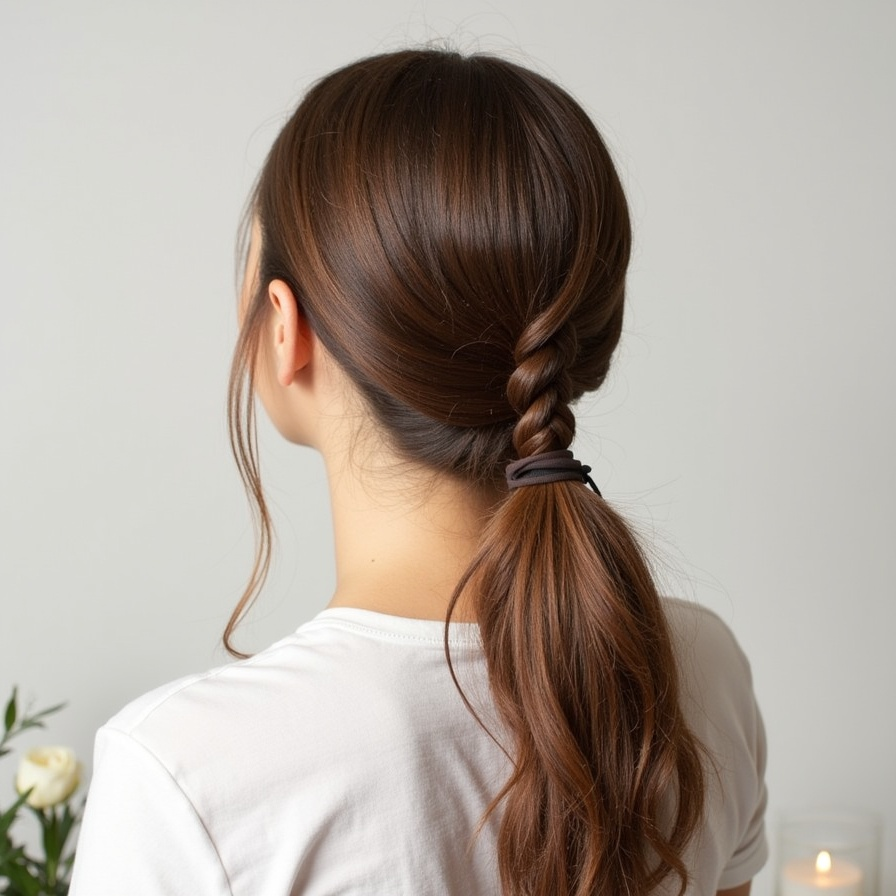 Achieve a polished and intricate look with a rope twist ponytail. Split your ponytail into two sections, twist each individually, then twist them around each other. Secure the end with an elastic for a refined finish. This technique adds dimension and elegance, transforming a basic ponytail into a stylish, textured statement ideal for both casual and formal occasions.
