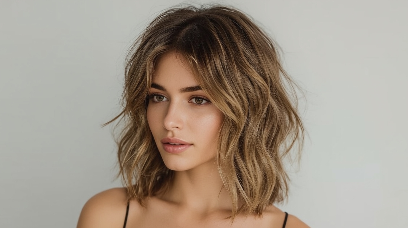 For a more glamorous take, the glam shaggy lob combines texture with volume and softness. Curling the ends adds bounce and movement, creating a sophisticated, red-carpet-ready look. This haircut is ideal for women who want to elevate a casual style into something luxurious. The mix of structure and tousled waves allows for endless styling options while maintaining effortless charm.
