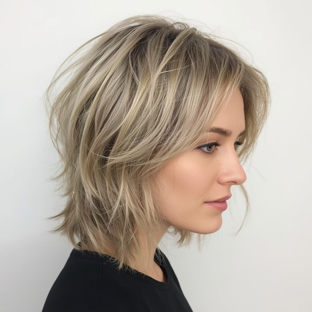 Thin or fine hair can benefit greatly from a shaggy lob. Strategically placed layers create the illusion of volume, giving hair a fuller and more textured appearance. This cut is easy to maintain, allowing fine hair to move naturally without appearing flat. It’s a flattering option for women who want a stylish, effortless look without heavy layering or daily styling struggles.