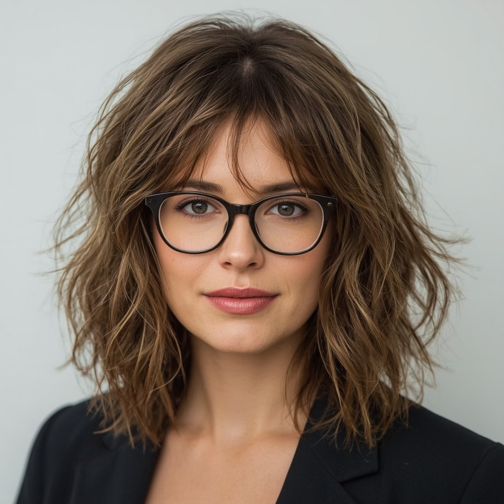 Glasses pair beautifully with a shaggy lob. Layers balance facial features, while the length frames the face without overwhelming it. Whether you wear bold frames or subtle spectacles, this haircut complements glasses perfectly, creating a harmonious, stylish appearance. Lightly tousled or straightened, it’s both flattering and practical.