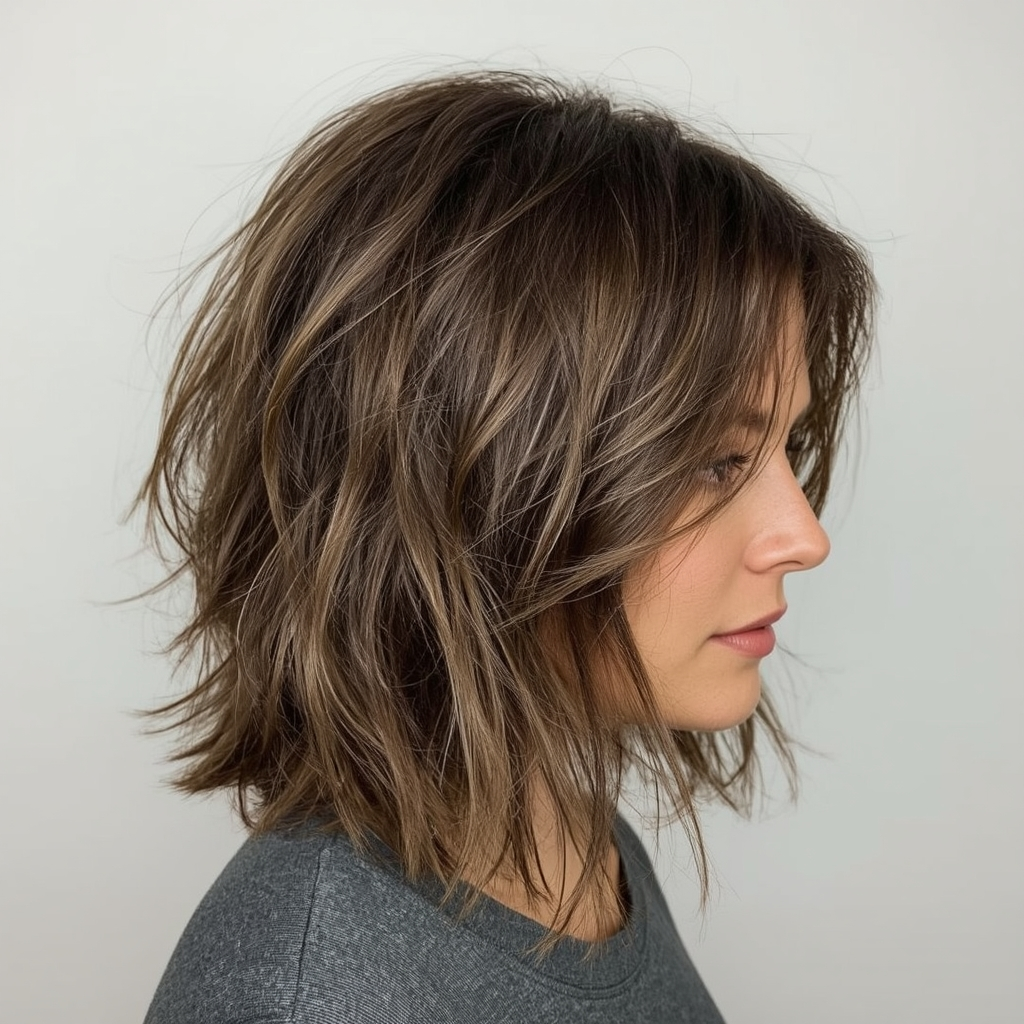 Shaggy lobs aren’t just for younger women—they can be timeless and flattering for those over 50. Layers add softness and movement, while the overall shape enhances facial features. This cut works on various textures, from fine to thick hair, and is an elegant choice for mature women seeking a modern, age-defying style.