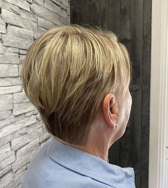 The stacked haircut is another excellent option for women over 50 seeking short hairstyles with structure. Layers are stacked at the back, creating volume while the front remains sleek. This style works well with both thick and fine hair, adding dimension and movement. The stacked cut is elegant, easy to maintain, and provides a polished silhouette that enhances facial features, making it a go-to choice for those looking to refresh their look.
