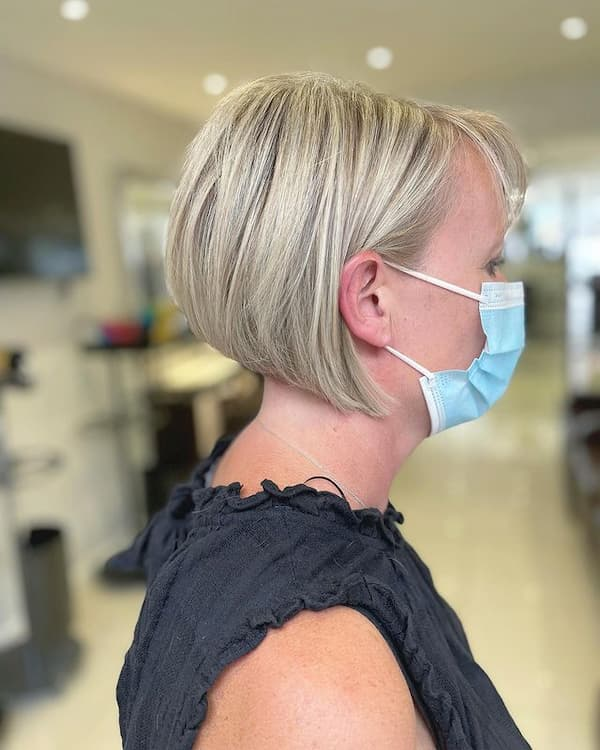 For women with fully white or gray hair, a stacked short bob is a sophisticated option. The layers add texture and fullness, preventing hair from appearing flat. This cut works well with the natural shine of white or gray hair, enhancing the color while maintaining a polished, contemporary look. It’s an excellent choice for mature women who want to embrace their natural hair color while keeping a stylish, modern silhouette.