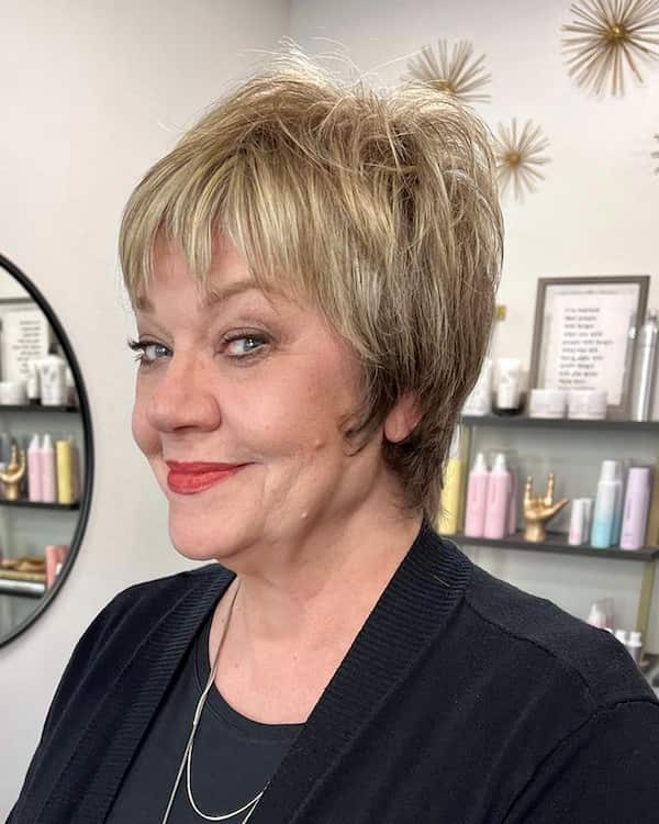 The Pixie Perfect Paula is a short haircut designed to maximize volume and create the illusion of thicker hair. Its layered textures and tapered sides give hair a full, structured appearance while remaining easy to manage. This cut works particularly well on fine hair and adds a youthful, dynamic edge. By enhancing natural hair shape and volume, the Pixie Perfect Paula offers a sophisticated yet approachable look for women over 50.