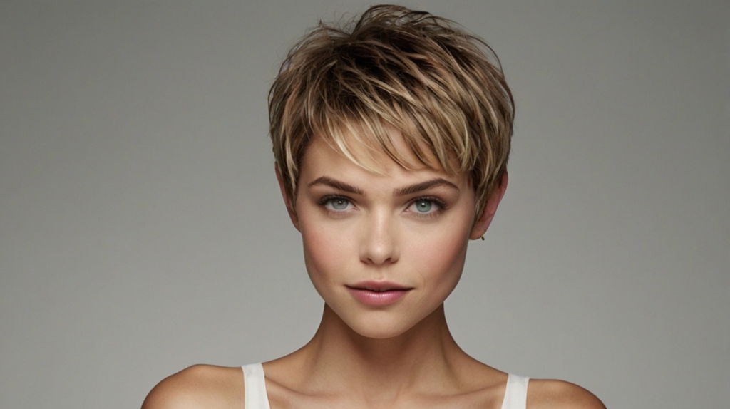 This haircut enhances the volume of fine hair, giving the illusion of thickness without heavy products. Using a light smoothing serum ensures a sleek finish while maintaining the airy texture of the layers. This pixie is perfect for women seeking a contemporary, fashion-forward look.