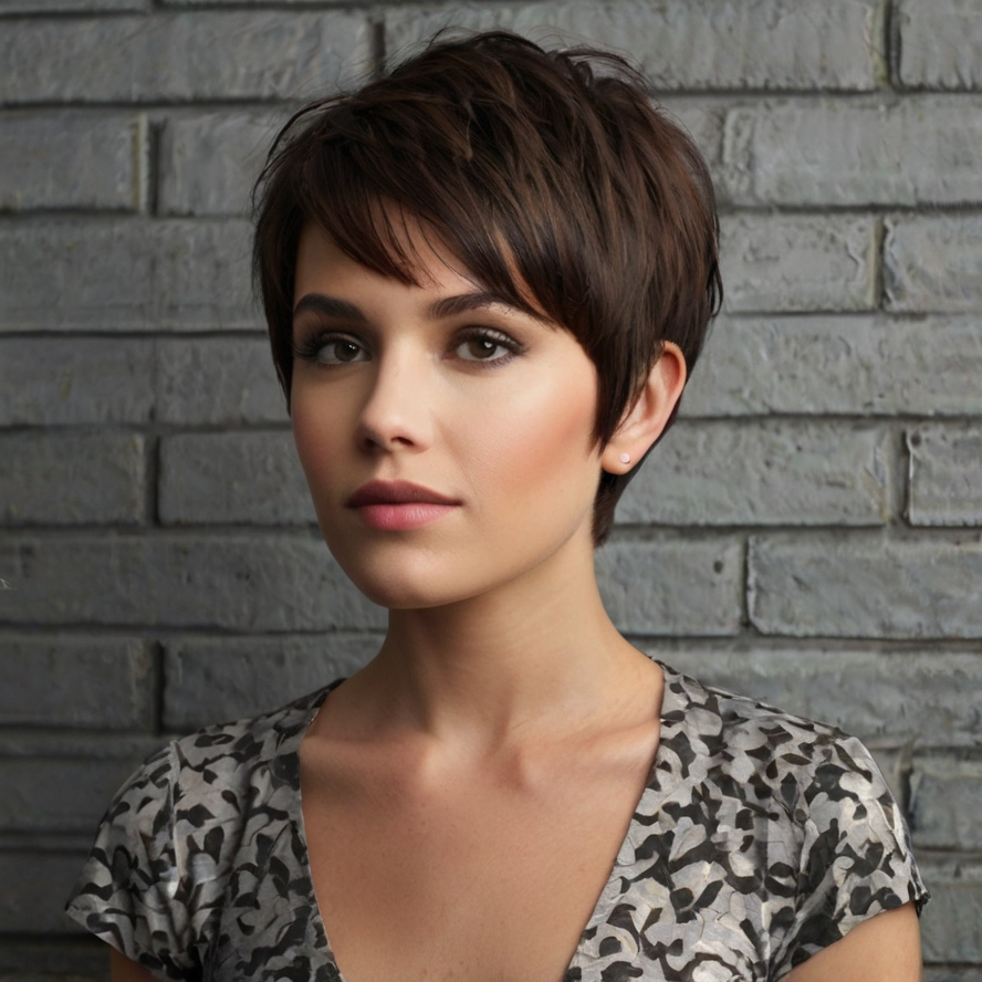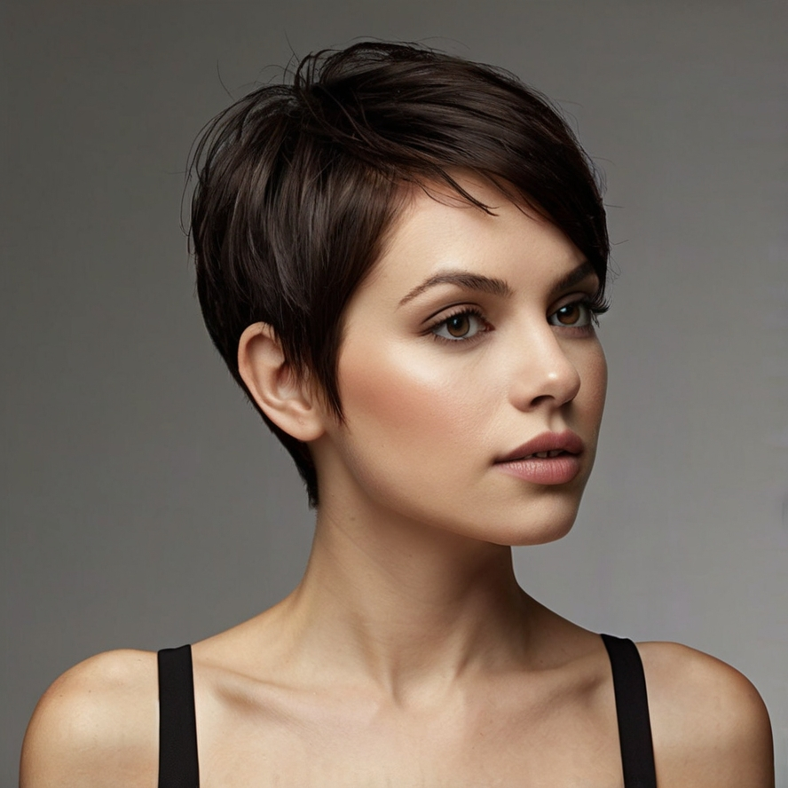 A razor-cut pixie delivers a chic, edgy appearance while remaining practical for everyday wear. The sharp edges and defined lines give the hair structure, enhancing volume and texture.