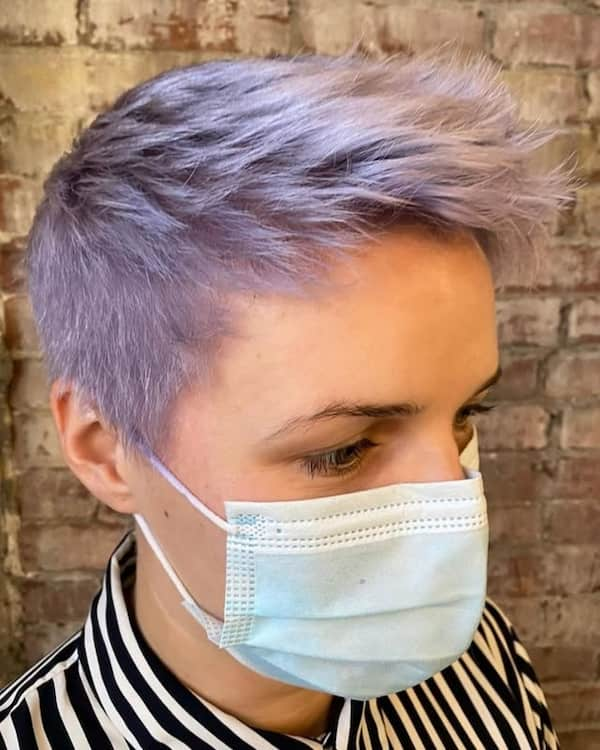 Inject a pop of purple into your pixie for an instant statement. This bold color turns a simple spiky pixie into a playful and eye-catching hairstyle. The vibrant hue adds dimension, while the spikes maintain a sense of structure and edge. Using color-safe shampoo and conditioner helps retain the vibrancy and ensures that your pixie looks fresh and lively for weeks.