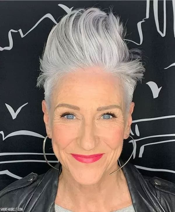 Sophistication meets edge in this gray undercut pixie. The spiky top adds energy and youthfulness, while the undercut reduces bulk for a sleek finish. This style works for women of all ages, combining elegance with contemporary flair and minimal maintenance.