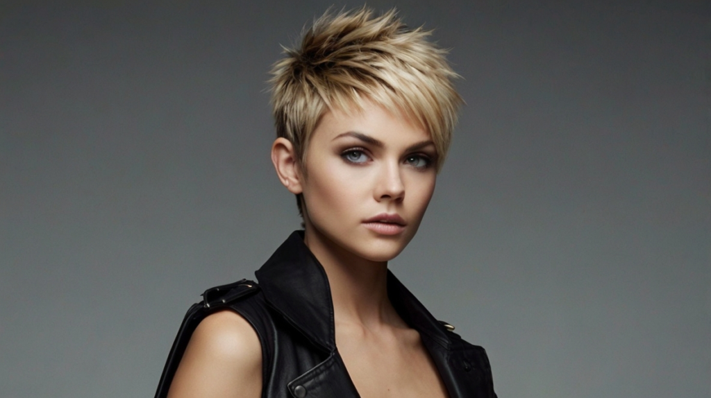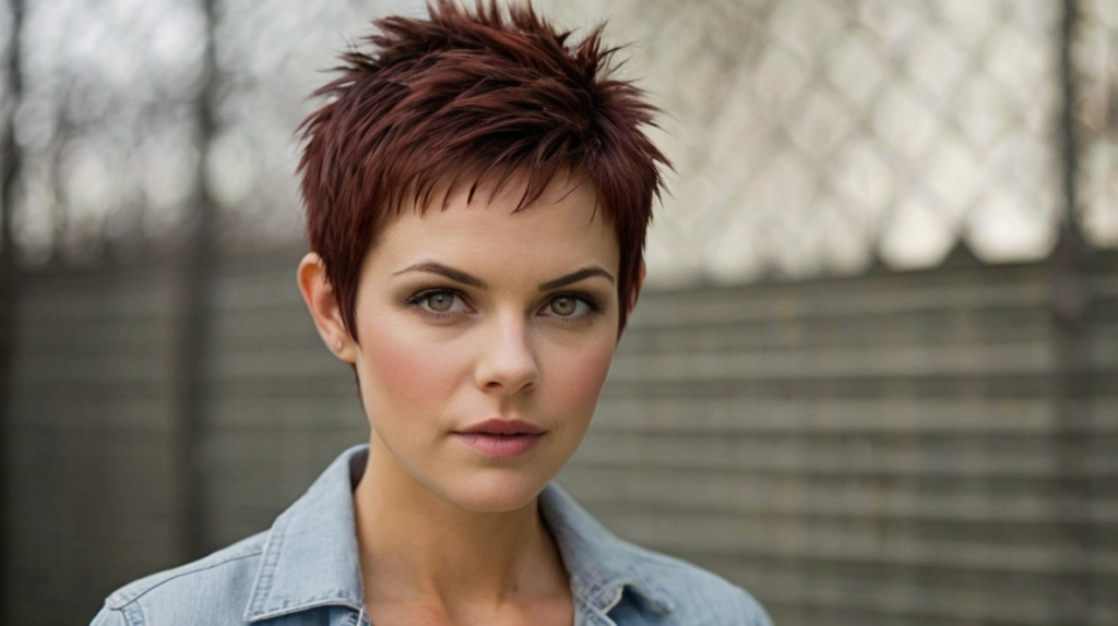 This bold pixie features clean shaved sides and back, allowing the top spikes to stand out dramatically. It’s a confident and striking cut that pairs well with subtle highlights or natural hair colors. Styling is simple with a small amount of product to shape the spikes and keep the edges sharp.