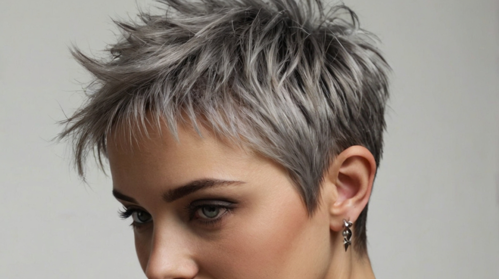 Embrace natural gray with a spiky pixie that balances elegance and vitality. The spikes add youthful energy, while the soft gray tone maintains sophistication. Ideal for women transitioning to silver hair, this style is low-maintenance but full of personality, enhancing both confidence and charm.