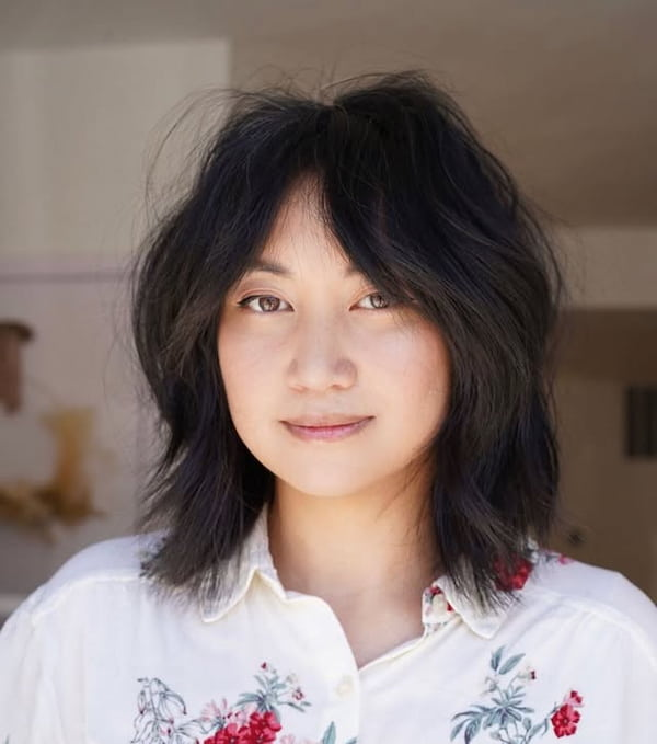 Choppy bangs at the front instantly add volume to fine hair, while mid-length layers throughout the cut create movement and lift. This combination prevents hair from looking flat, giving it a lively, bouncy effect. The layered design ensures natural flow, making it an excellent choice for anyone wanting fuller-looking fine hair.