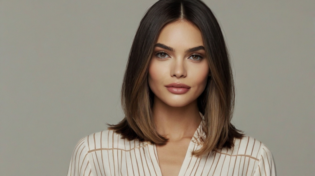 A center-parted sleek lob is a polished, minimalistic cut ideal for fine hair. The clean line along the ends creates the illusion of thickness, while the center part adds symmetry and balance. This style works for a wide range of face shapes and is perfect for women seeking a chic, low-maintenance hairstyle.