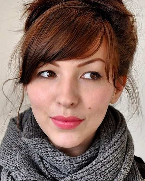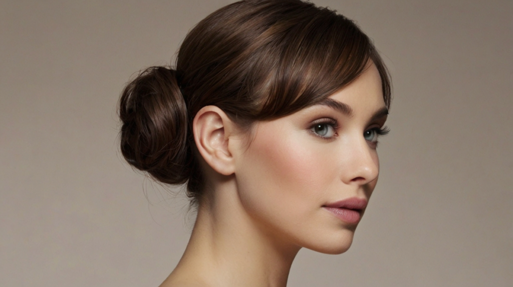 Even a simple chignon becomes feminine and dreamy with side bangs. They soften facial angles, making the style approachable and versatile for professional, romantic, or casual settings. The bangs bring effortless elegance without requiring complex styling.