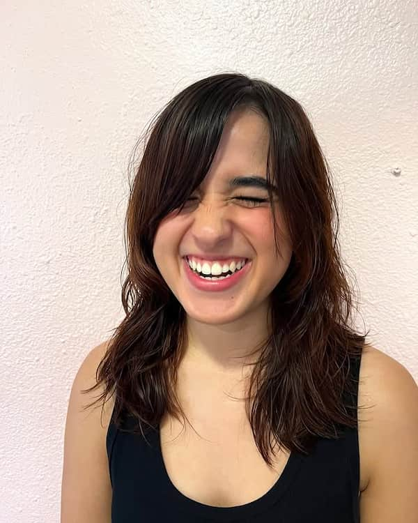 11. Mid-Length Layered Haircut with Side Bangs