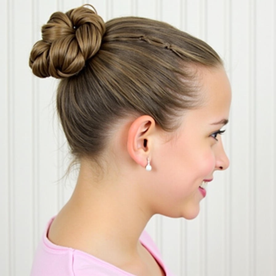 The sleek braided hi bun is clean, functional, and visually appealing. Hair is tightly secured into a high bun with braids woven in, providing extra stability and control. This style works well for sports, yoga, or daily wear, especially in hot weather, as it keeps hair off the neck and forehead. The sleek design highlights facial features and gives a polished, attractive appearance. Hair products or gel can enhance smoothness and prevent flyaways. Comfortable yet elegant, this hairstyle ensures hair stays firmly in place during activity while looking stylish and intentional, making it perfect for active girls on the move.