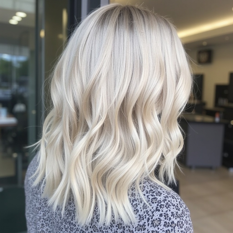 Ash blonde paired with silver highlights creates a cool, modern look with striking dimension. Face-framing sections and crown areas are often foiled to accentuate the metallic sheen, while violet-based toners neutralize yellow undertones. Bleaching to levels 8–9 is typically required before applying the ash shade using a 20-volume developer for optimal lift without excess damage. Quarter-inch weaves for silver highlights allow a natural integration with ash tones. This combination is particularly flattering on cool skin undertones and provides a contemporary, spring-ready aesthetic. The result is a sophisticated, reflective style that adds subtle depth while maintaining long-term hair health.