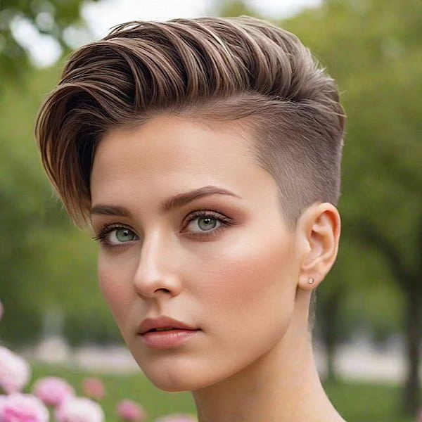 For those who love bold, statement-making styles, a shaved pixie with an undercut delivers a confident and edgy look. Perfect for the modern woman who wants her hair to reflect her fearless personality.