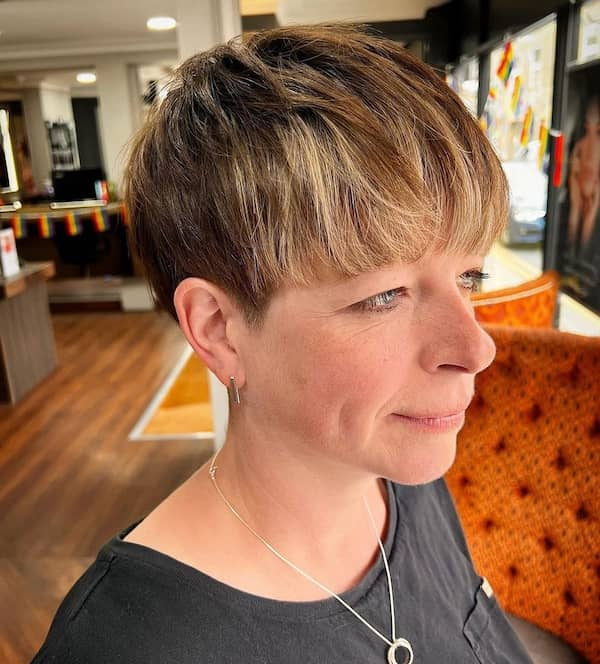 19. Pixie Haircut with Full Fringe