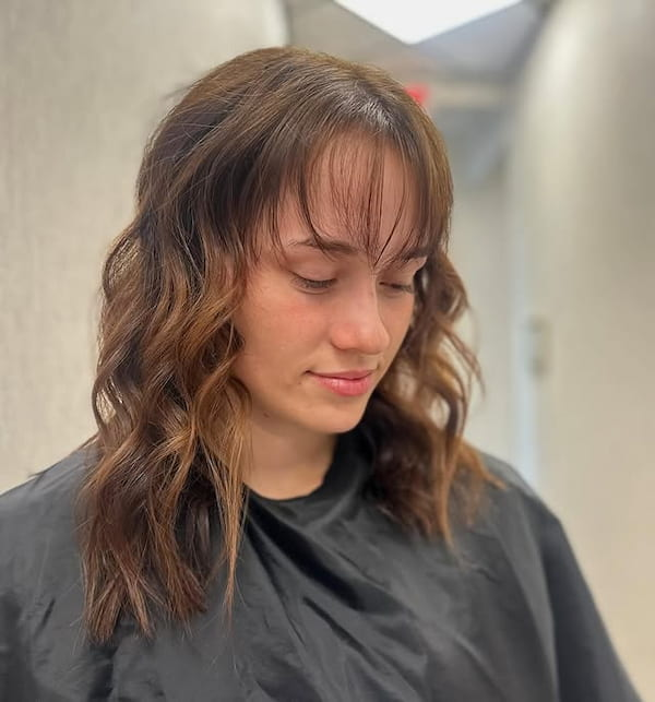 Shoulder-Length Wavy Hair with Wispy Bangs