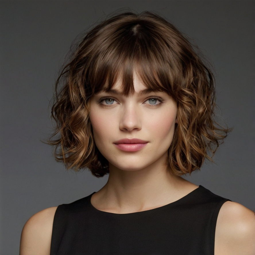 Short Wavy Haircut with Wispy Bangs